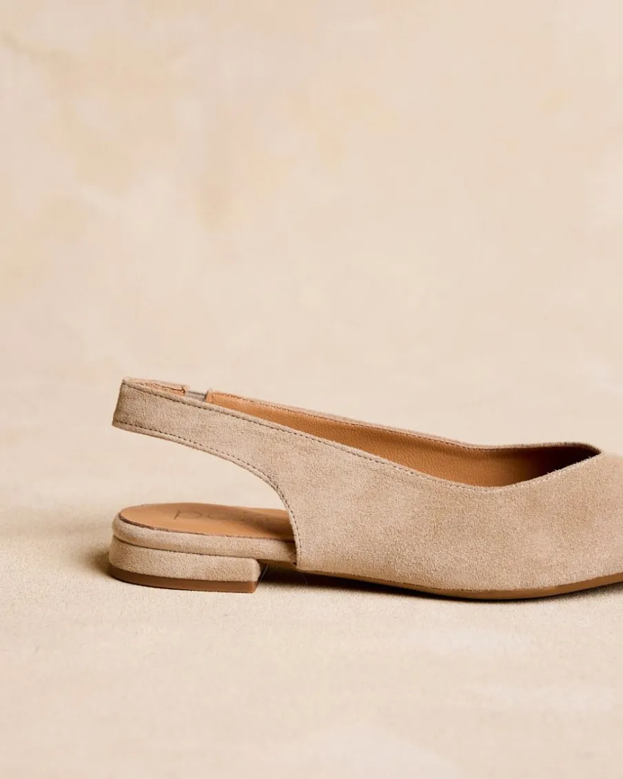 Ballerines à bride arrière couleur sable, parfaites pour la saison printemps-été. Son design pointu stylise le pied, tandis que la sangle dorsale assure un ajustement flexible. Avec une semelle plate idéale pour les longues journées, ces ballerines sont le complément parfait pour toutes les occasions.