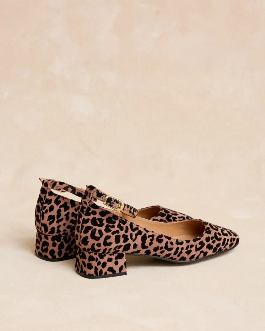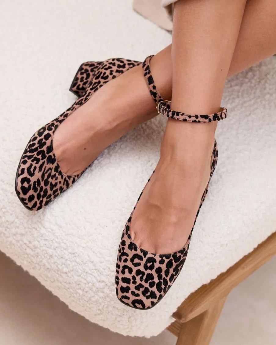 Imprimé animalier en daim Mary Jane avec une fine bride à la cheville, un crochet à boucle. Bout rond et semelle plate. Très confortable et idéal pour vos looks les plus audacieux à porter au quotidien, la touche parfaite pour vos tenues avec un jean. De plus, l’imprimé animalier est une tendance pour cet automne-hiver.
