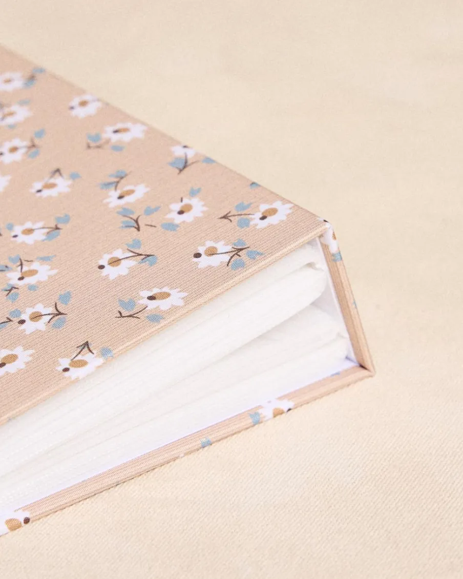 Album photo couleur moka avec imprimer floral délicat, reliure de haute qualité et capacité de plusieurs photographies.