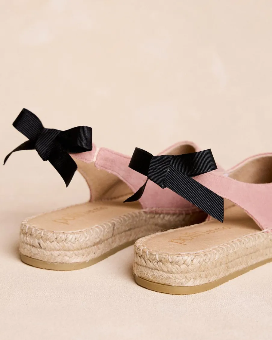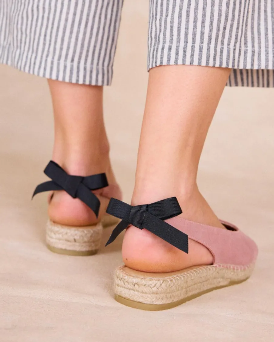 Espadrilles à bride arrière de couleur maquillage. Design simple mais sophistiqué, avec un talon ouvert et un nœud noir qui ajoute du contraste.