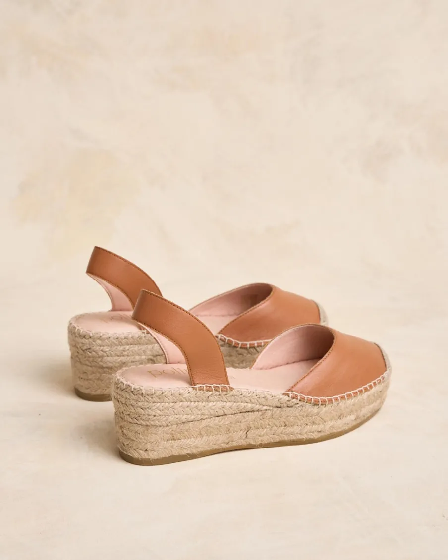 Espadrille plateforme à bride arrière couleur cuir. Bout arrondi avec bout en alfa. Encolure arrondie. Bride de talon avec une large bride. Compensée d’alfa. Une chaussure très féminine et confortable pour créer des looks.