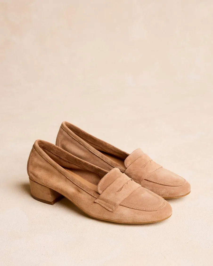 Mocassin à talon cuir de couleur cuir. Un modèle élégant avec un extérieur made in cuir.