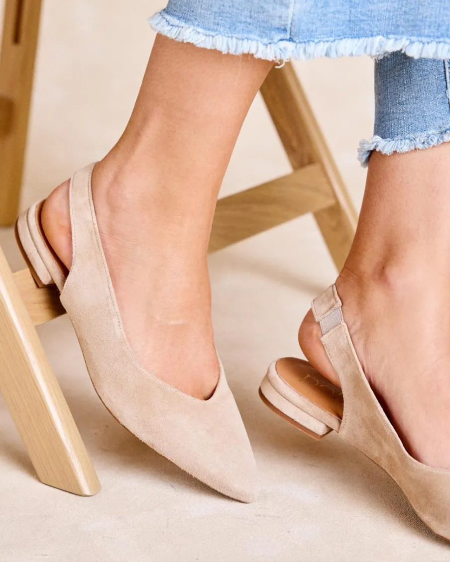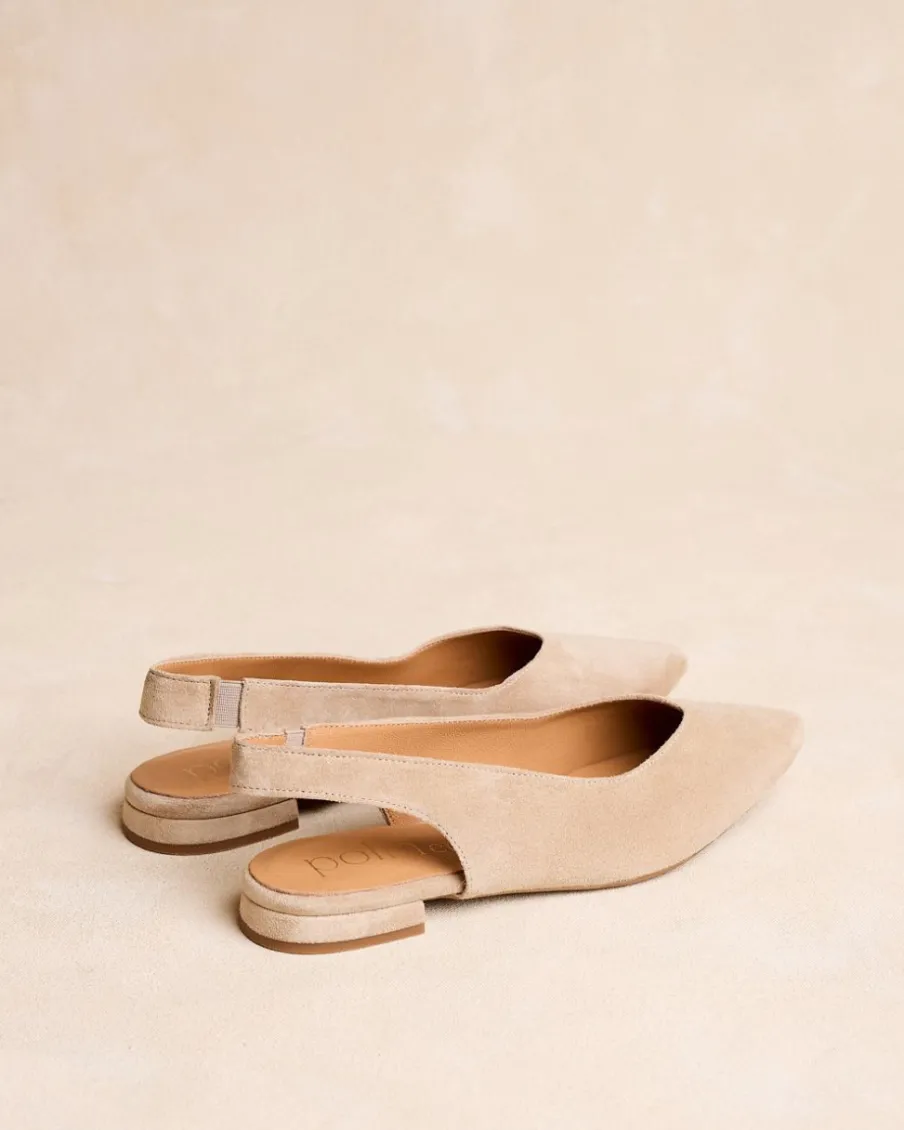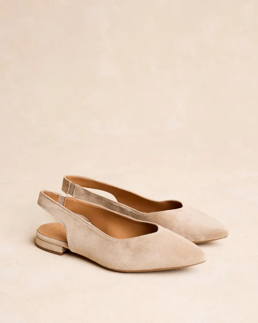 Ballerines à bride arrière couleur sable, parfaites pour la saison printemps-été. Son design pointu stylise le pied, tandis que la sangle dorsale assure un ajustement flexible. Avec une semelle plate idéale pour les longues journées, ces ballerines sont le complément parfait pour toutes les occasions.