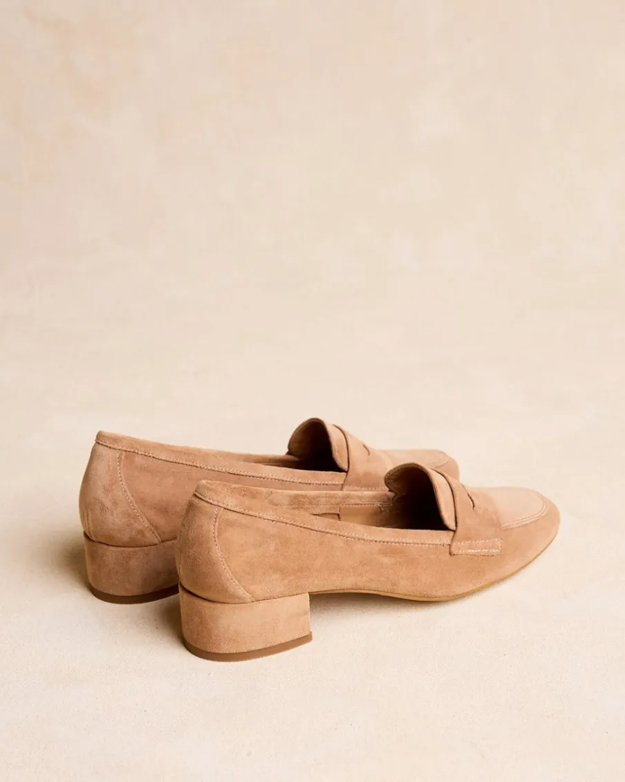 Mocassin à talon cuir de couleur cuir. Un modèle élégant avec un extérieur made in cuir.