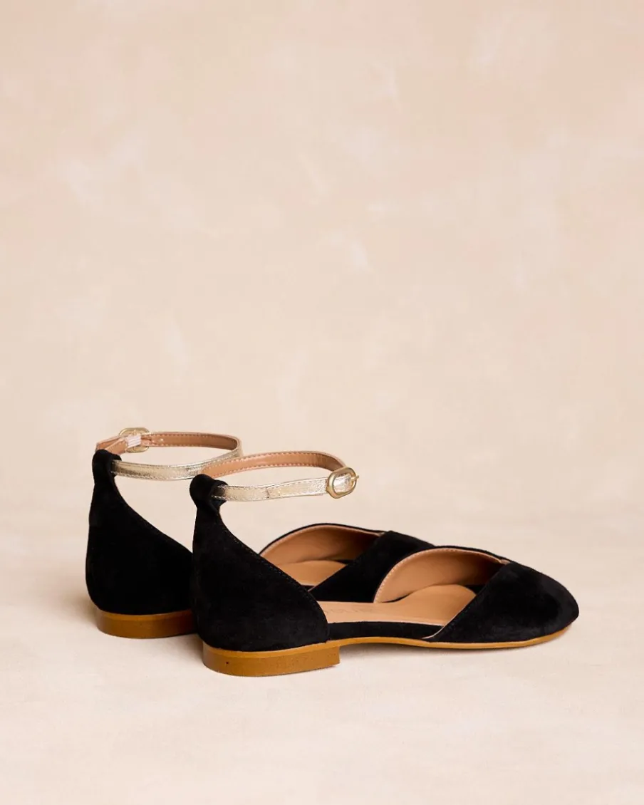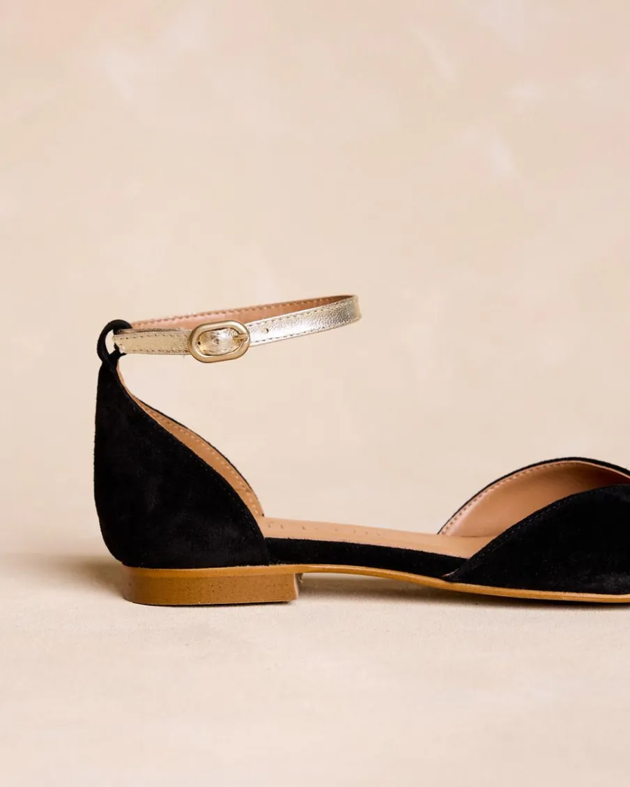 Sandales noires à bout ouvert avec bracelet de cheville délicat. Parfait pour un look frais et féminin.
