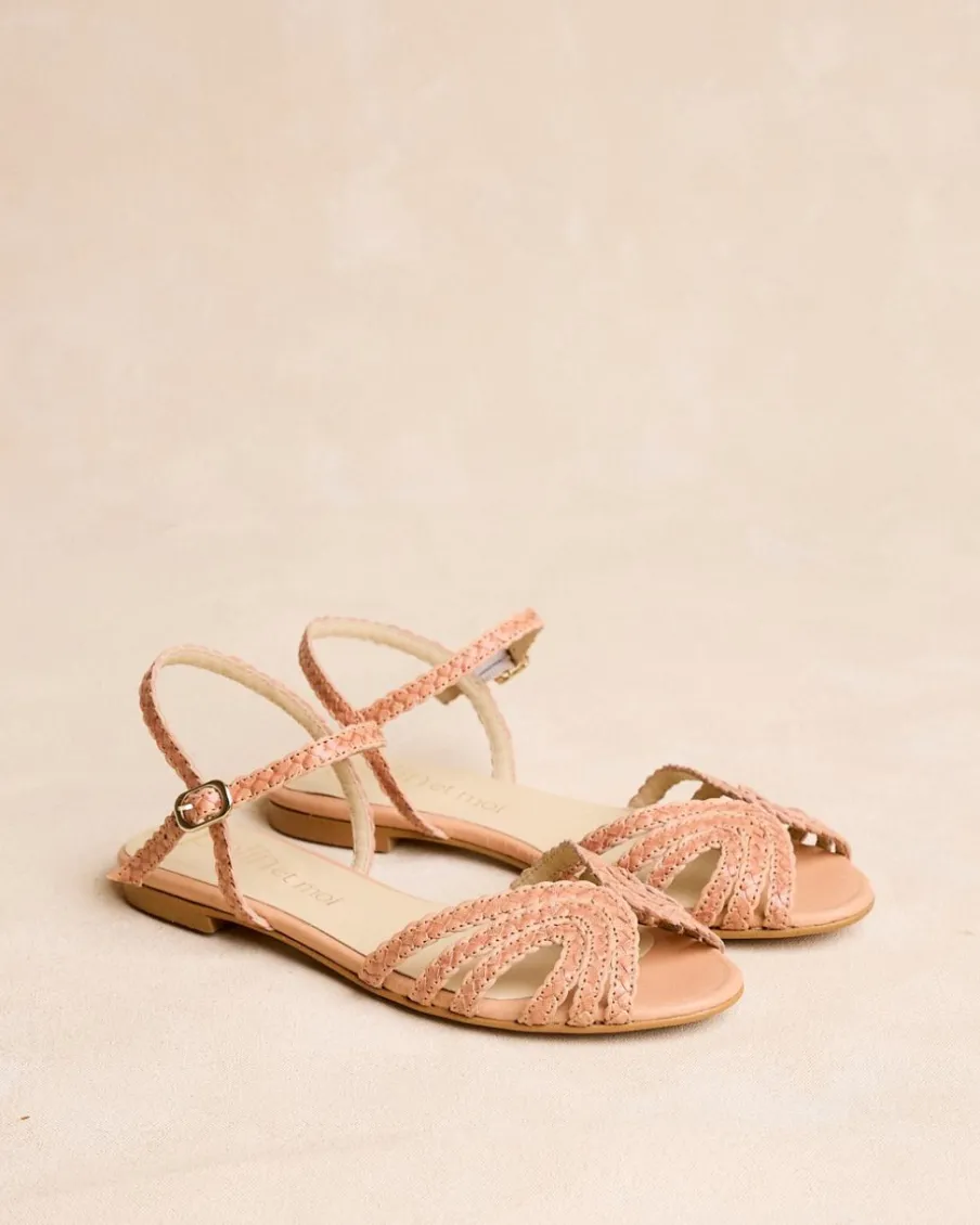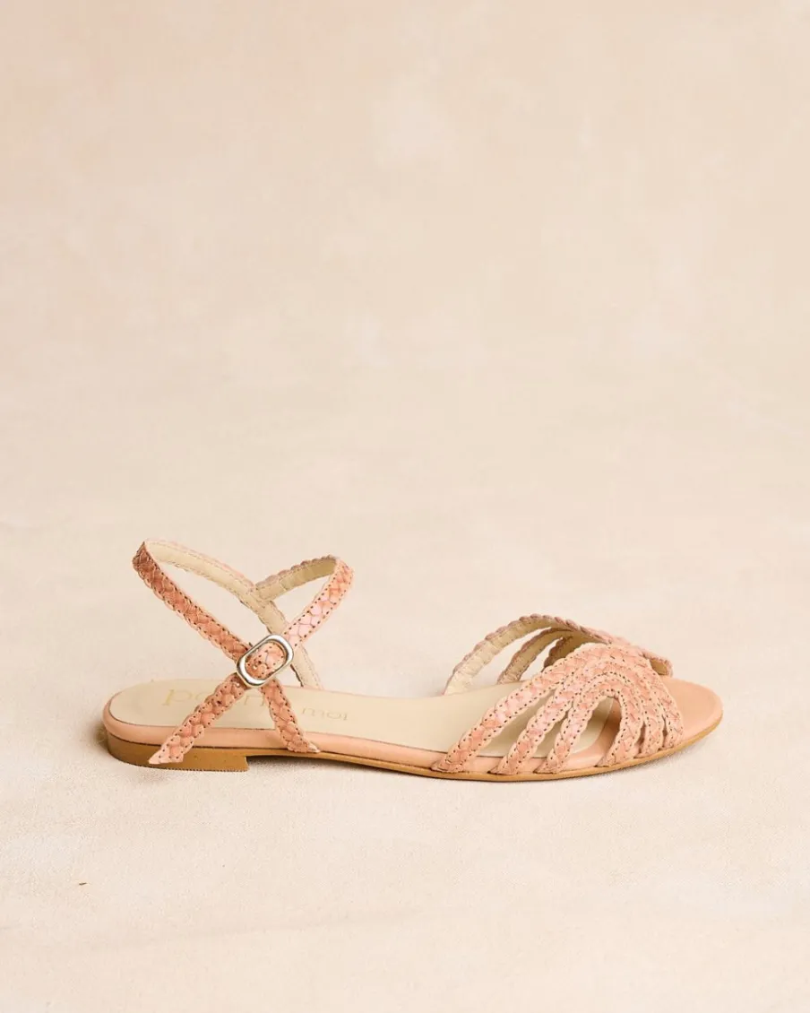 Sandale tressée en cuir camel. Tige avec triple bande tressée avec détail au centre. Talon fermé par une bride en cuir avec boucle pour un meilleur ajustement. Petit talon carré effet bois. Une sandale confortable et très polyvalente à porter au quotidien.