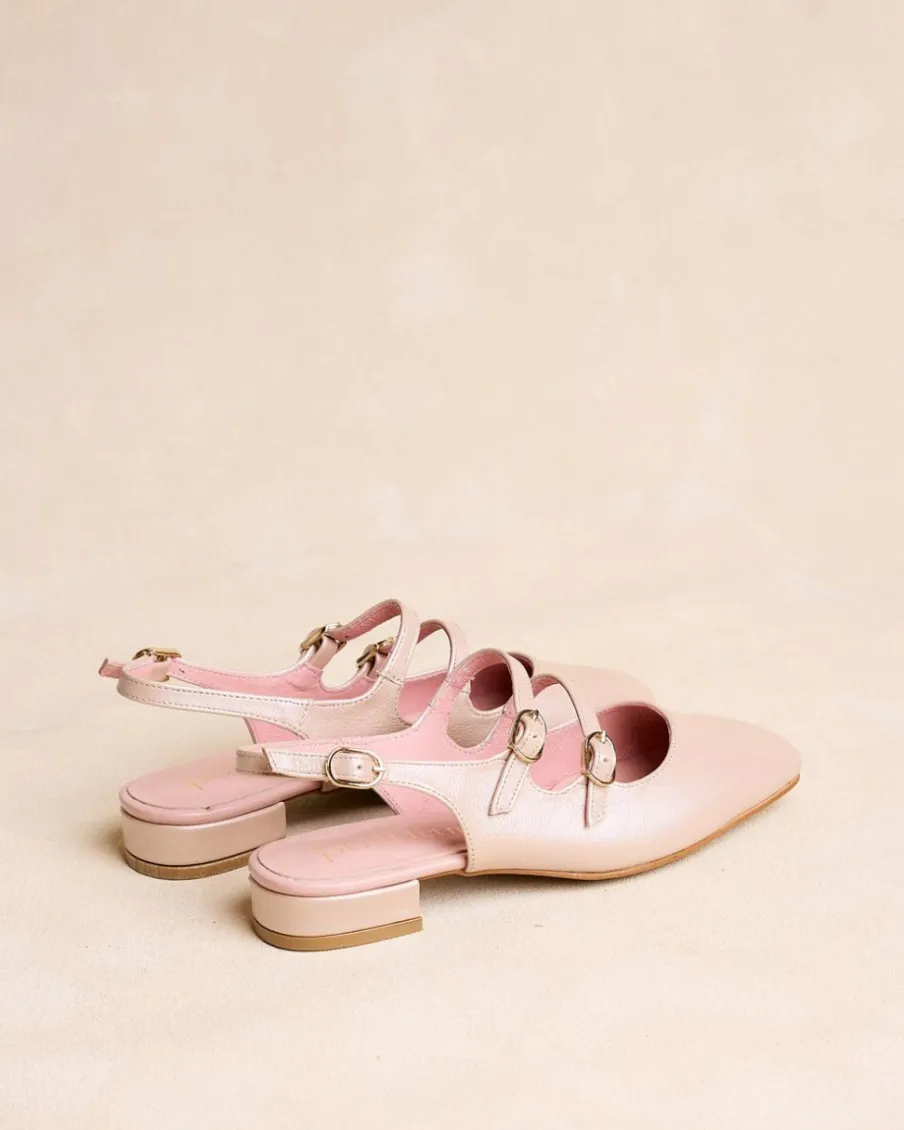 Escarpins Mary Jane de couleur nude. Fermeture à double à lanière réglable avec boucles. Bout légèrement carré. Encolure arrondie. Une chaussure stylée et élégante pour un usage quotidien.